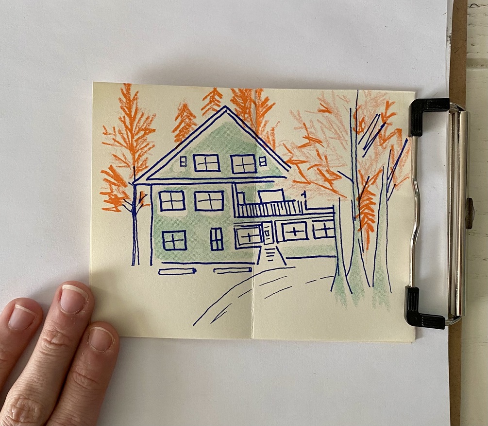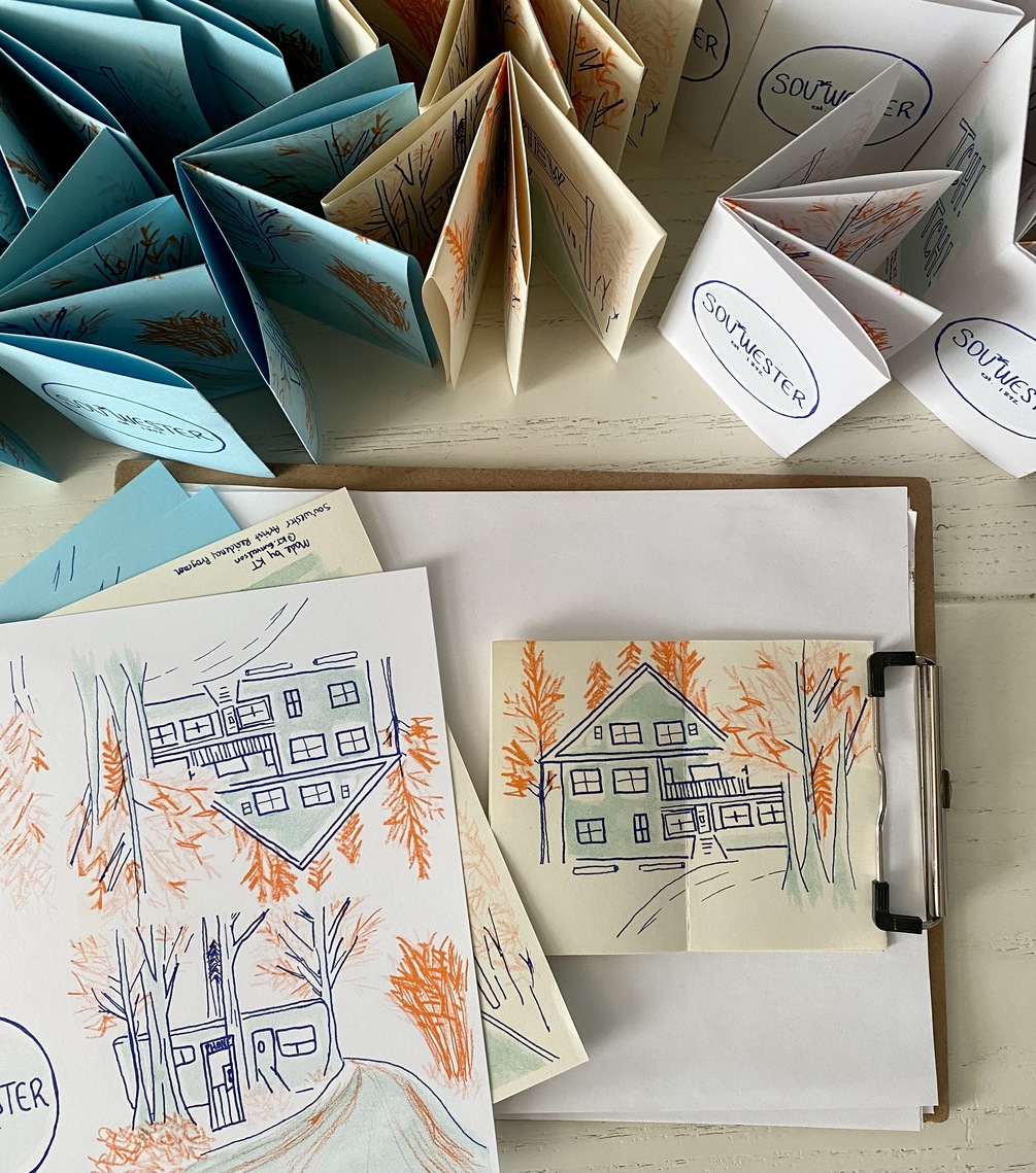 This little one-sheet zine was inspired by an artist residency at the Sou’wester Historic Lodge and Vintage Travel Trailer Resort located in Seaview, Washington. It features three magical places on Sou'wester resort grounds and was created with pen, watercolor, and colored pencil layers. Risograph printing by Outlet studio & print shop located in Portland, Oregon.
